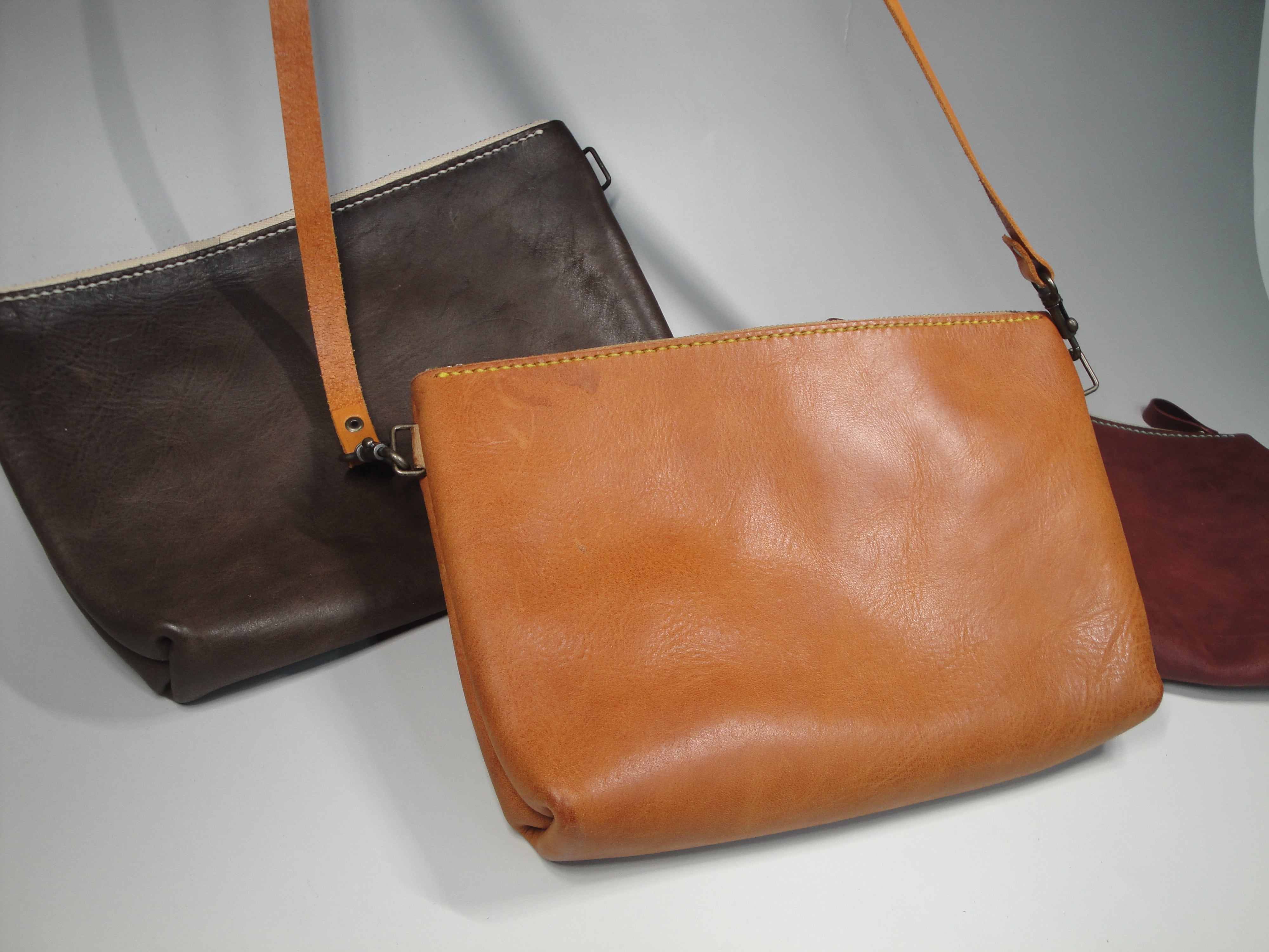 革:イタリア植物タンニン鞣し革など日によって選べる革は変ります。コシがあり、切断面を磨くとツヤが出ます。タンニンの発色や日焼けなど経年変化を楽しめます。